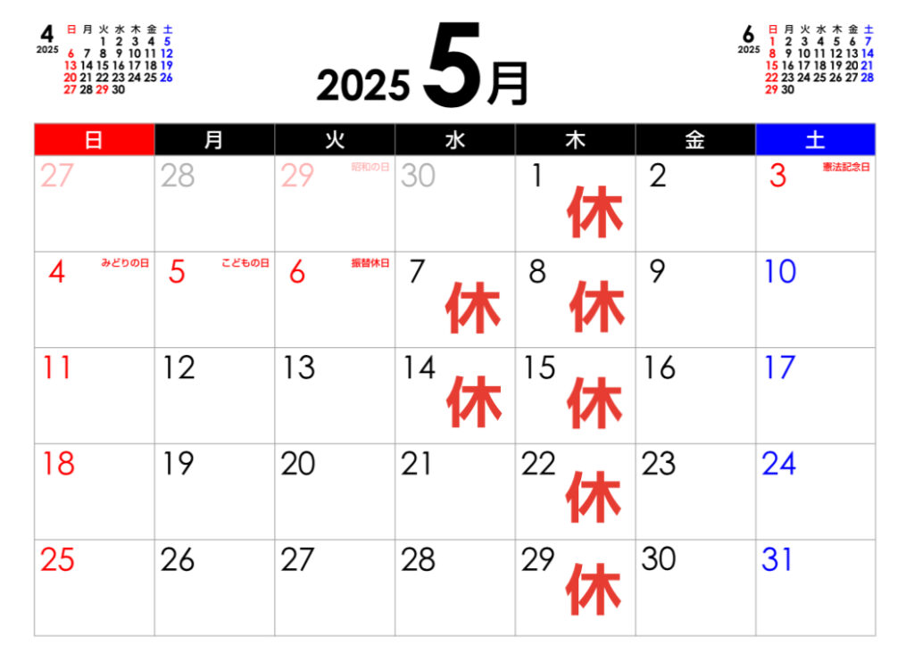 5月の営業予定