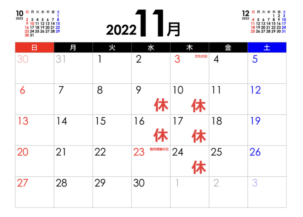 11月の営業予定