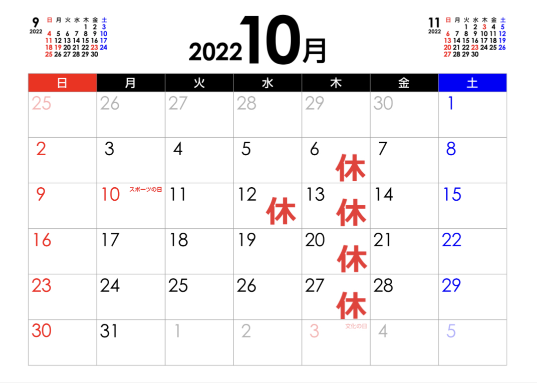 10月の営業予定